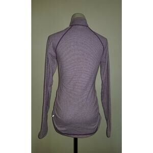 LUCY WOMEN SZ XS 1/4 ZIP ACTIVE TOP PURPLE & OFF WHITE STRIPES LS S2