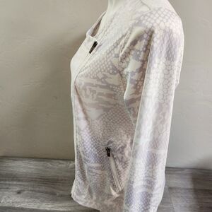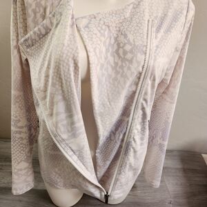 LUCY White Violet Jacket M Asymmetrical Moto Style Activewear Leopard Print