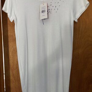 LUCY Wish SS Tee is Size Large, White w/dk blue design on front. Short-sleeved