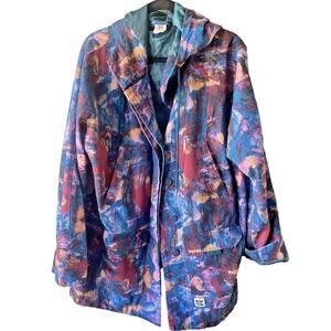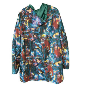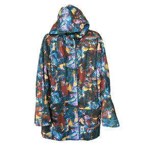 Rare find- LUCY & YAK Hudson Jacket in Brighton By Night Print. Women's Size UK Medium / Equivalent to UK 12-14. Sustainable company from UK. 100% Organic Cotton & 100% recycled polyester lining. Button front, Longline Jacket, Funnel neck with collar hood, 2 patch pockets and 2 chest welt pockets.