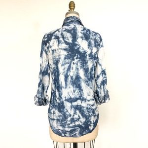 Really easy, comfortable and cool tie dye shirt in blues and white. Great to wear it casually open as a topper with leggings, shorts or long slim or flowey skirt.