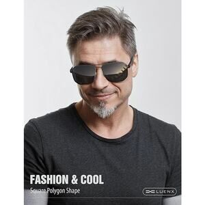 LUENX aviator sunglasses for men, featuring square polarized polygon lenses and UV400 protection. Designed for outdoor and driving use, these 61MM sunglasses reduce glare while enhancing clarity. Comes with accessories for easy storage and care—perfect for daily wear or travel.