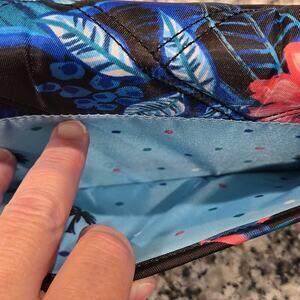 The interior left side has 2 mesh pockets and 1 slide in larger pocket.