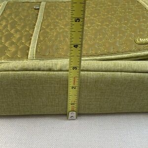Features: Shoulder carry or crossbody, Hidden bottle pocket, large padded rear sleeve for tablet, Multiple pockets inside and out, front zip pockets, magnetic closures, four leaf clover quilted detailing, adjustable strap
