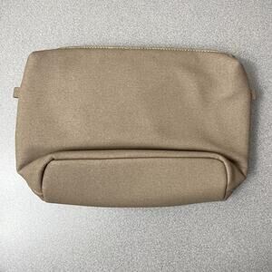 This listing is for a LUG Volley Matte Lux Toiletry/Cosmetics Bag. Tan. Logo at the exterior. Zip closure.
