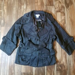 Grayish brown vintage inspired jacket with 3/4 length sleeves and elasticized waist tie. NWT