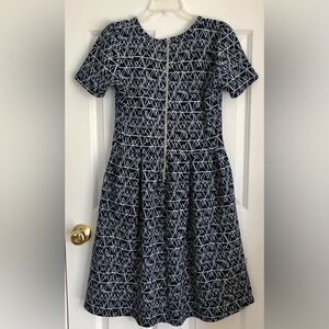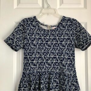 LULA ROE AMELIA DRESS SHORT SLEEVES RETRO WITH GEOMETRIC PRINT SIZE MEDIUM NAVY BLUE/WHITE, ZIPPER AT THE BACK,