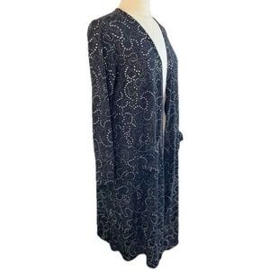 LULA ROE Elegant Sarah Black & Silver Metallic Longline Duster Cardigan, Large