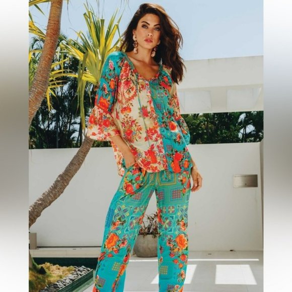 LULA SOUL Aqua Turquoise Capri Wide Leg Pants