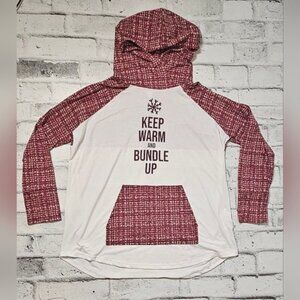 LULAROE Amber Burgundy & Cream Hoodie "Keep Warm and Bundle Up"