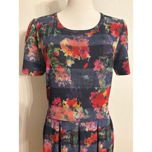 LULAROE Amelia Dress | A-Line Short Sleeve Mid Length Fall Floral Colors | XL