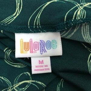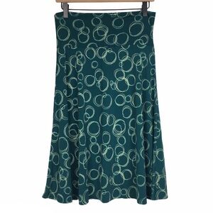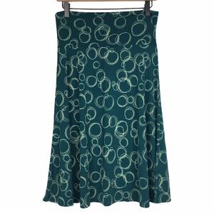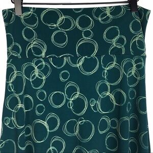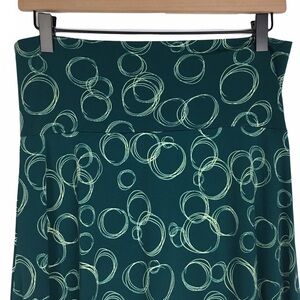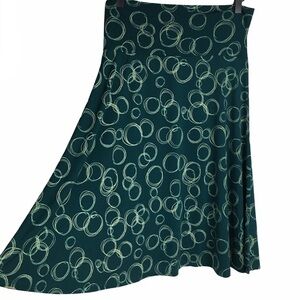 lularoe Azure Skirt Circles Scribble Print Boho Size Medium Festival Knee Length A Line Fold-over Waist Green Cream