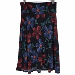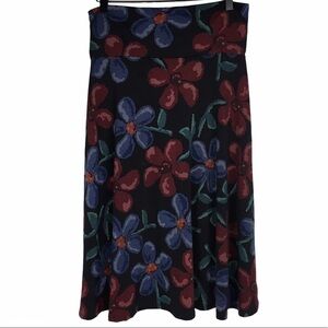 lularoe Azure Skirt Floral Dot Pixel Digital Boho Size Medium Festival Knee Length A Line Fold-over Waist Black Blue Burgundy Green