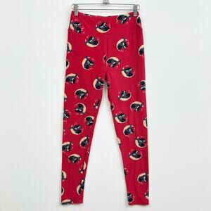LULAROE Black Cat on the Moon Leggings Red Stretchy Super Soft Women's One Size