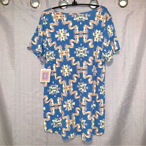 🔲LULAROE Blue Patterned Women's Top "CLASSIC TEE" size Large