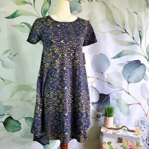 A staple in the LuLaRoe Collection, the Carly is a swing dress that effortlessly flatters the feminine physique. Featuring a charming patch pocket, a high-low hemline, and open sleeves — she was made with you in mind. You need one for each day of the week.