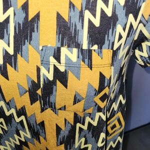 Keywords: LuLaRoe, dress, casual dress, geometric print, gold dress, black dress, knit dress, short sleeve dress, womens dress, midi dress, boho dress, comfortable dress