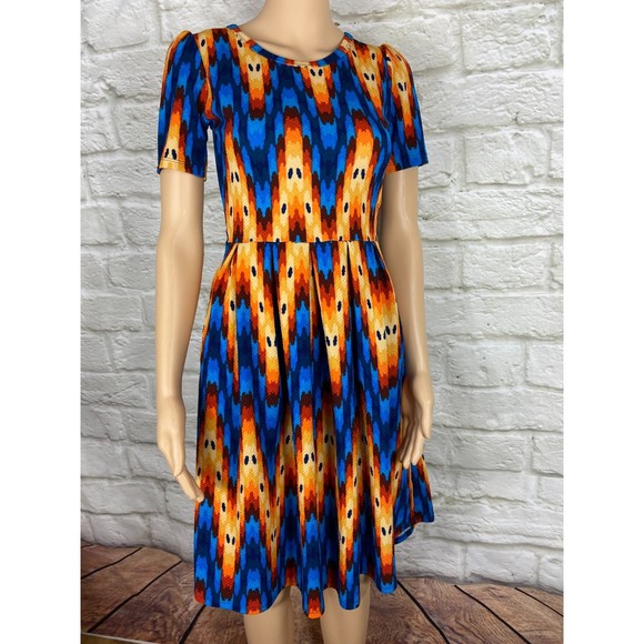 LULAROE Dress Size XSmall Stretchy Dress with Hidden Side Pockets Zipper Flared