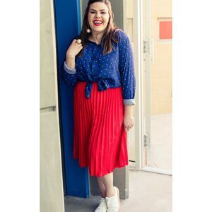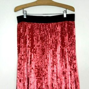 LULAROE ELEGANT JILL RED SHIMMER METALLIC PLEATED SKIRT PLUS SIZE XL 18/20 NWOT