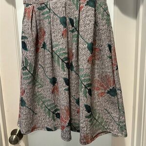LULAROE Gray Floral Print Dress Size M Shortsleeved Midi Fit Flare Pocke…