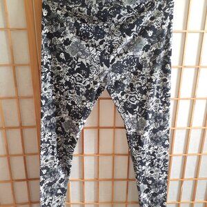 LULAROE LEGGINGS STRETCH BANDED BLACK & WHITE FLORAL WOMENS SIZE TALL & CURVY