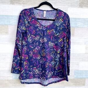 LULAROE Lynnae Floral Long Sleeve Tee Purple Womens Small