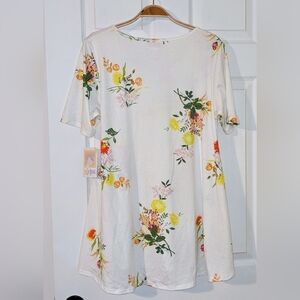 LULAROE MARIANNE WHITE FLORAL PERFECT SWING TEE SPRING COMFY SIZE MEDIUM NWT