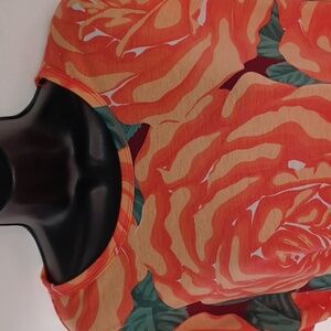 LULAROE - Orange, Green & tan Flower Print "Irma" Tunic Top - Size xxs, high/low