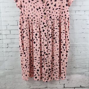 LULAROE PINK & BLACK ANIMAL PRINT SHORT SLEEVE BUTTON DOWN DRESS WITH POCKETS