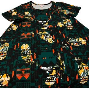 LULAROE SHORT SLEEVE TUNIC DRESS,WOMENS, XS, GREEN-ORANGE YELLOW ABSTRACT HI-LOW