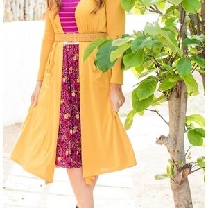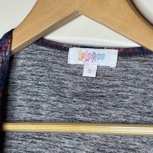 Lularoe Sarah cardigan size small purple blue . Maybe worn one time . Smoke free . Last 2 pics are for sizing and styling.