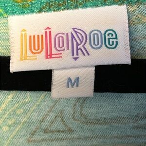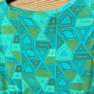 LULAROE Scoop Neck 3/4 Sleeves Green Print Casual Shirt Dress Geometric Med Midi
