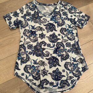 LULAROE WOMENS BLUE PAISLEY FLORAL T SHIRT MEDIUM