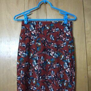 LULAROE Women's XS Tropical Leaf Floral Colorful Pencil Skirt Elastic Waist
