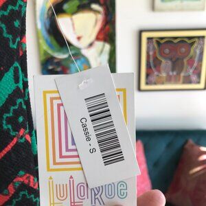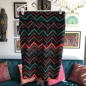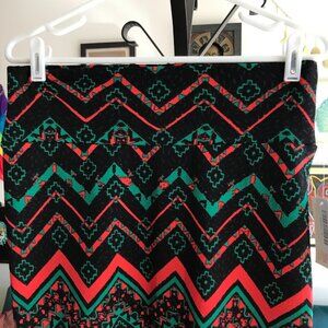LULAROE size S Black Green & Red Print Stretch Cassie Pencil Skirt NWT