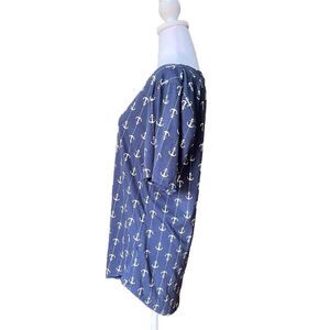 This LuLaRoe Classic Tee features a blue and white pattern with anchors , perfect for those who love nautical and patriotic themes.