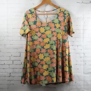 LULAROE MULTI FALL FLORAL SHORT SLEEVE ROUND NECK TUNIC TOP SIZE XXS