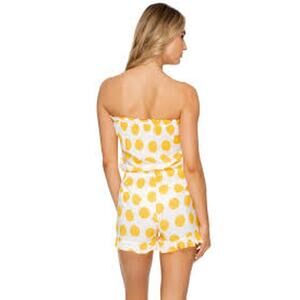 LULI FAMA Itsy Bitsy Strapless Polka Dot Ruffle Romper Small S Yellow