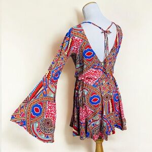 LULI FAMA Mandinga Goddess One Shoulder Bell Sleeve Mini Dress Size XS/Small