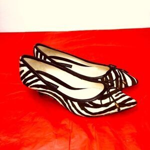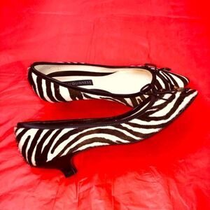 LULU GUINNESS SHOES PONY HAIR ZEBRA KITTENHEEL 5.5