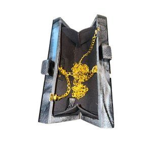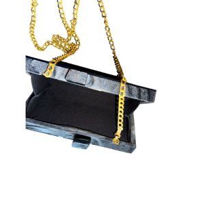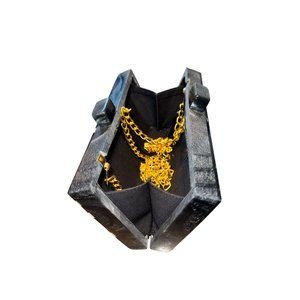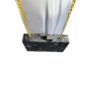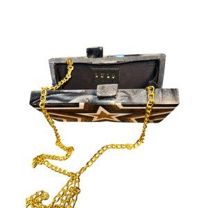 LULU NYC Black White Gold Star Design Small Box Shoulder Bag