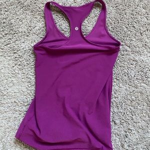 Purple racerback, in perfect shape and really stretchy! I’m a size 4 and it fits me very well with lots of room to grow.