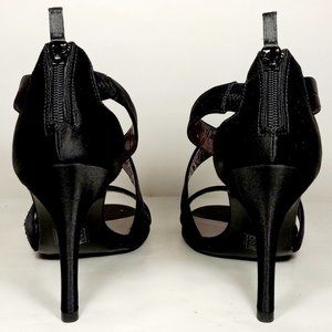 LULU TOWNSEND BLACK STRAP SATIN OPEN TOE ZIP UP BACK WOMEN HIGH HEELS SIZE 11M