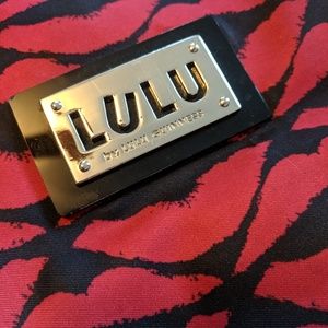 EUC LULU by Lulu Guinness tote bag. Lots of compartments to separate contents. Has hooks to make a crossbody bag but no strap. Fun lip makeup lipstick design. Perfect for that Makeup Artist MUA.