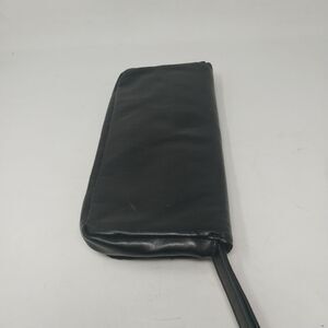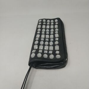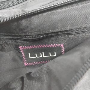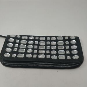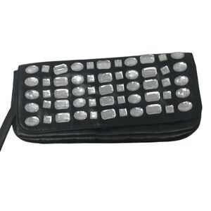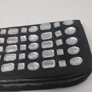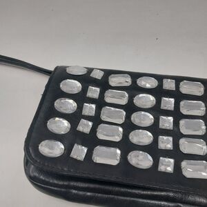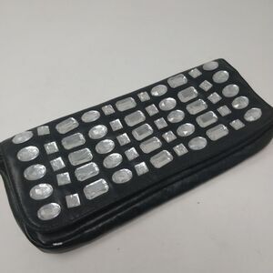 Wristlet is approximately 10" x 5". LULU Wristlet. godd condition. Black with clear accents.