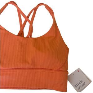 LULUEMON Energy Longline Bra in Coral Kiss is new with tags. Size: 10