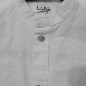 LULUKIDS LINEN PURE WHITE BUTTON DOWN LONG SLEEVE TODDLER BOY'S 3-4Y SHIRT WOODEN BUTTONS