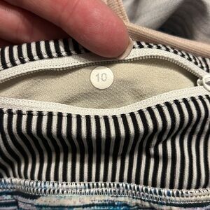 LULULEMON 10 Speed Blurry Bell in Purple Navy Lilac Striped Shorts Size 10