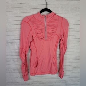 LULULEMON 1/4 ZIP STRIPED HOODED PULLOVER IN SALMON PINK, SZ 4
