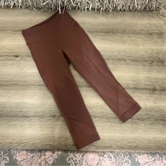 LULULEMON 2 Rose Blush Pink Cropped Sheer Panels High Waisted Leggings Workout